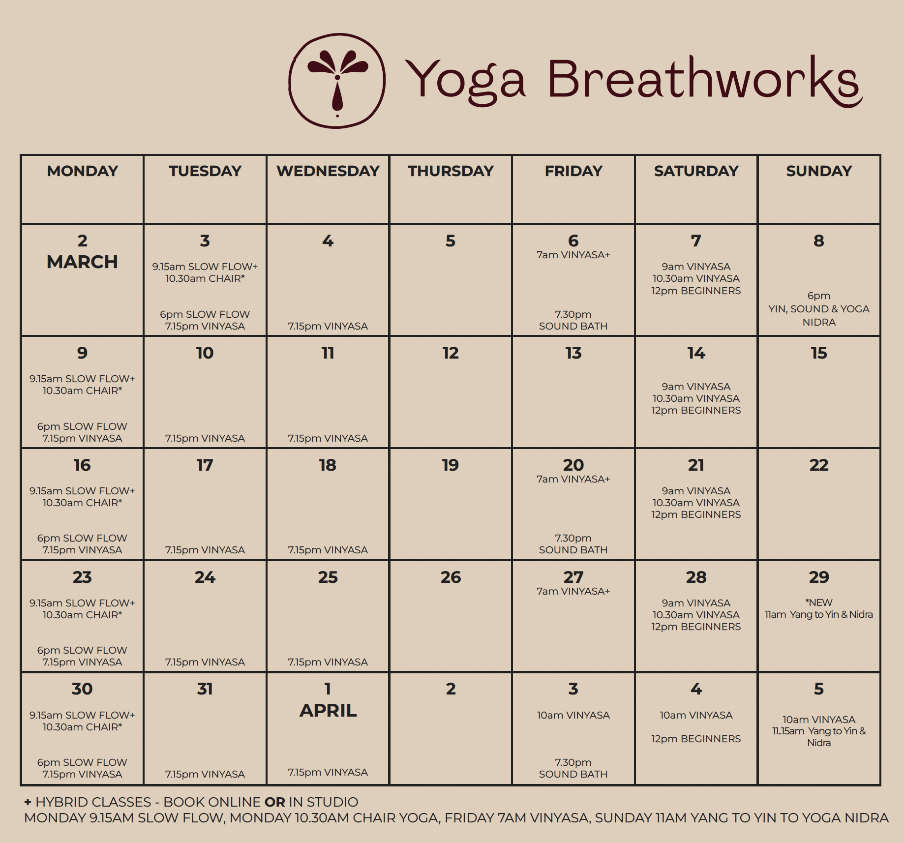 YOGA CLASSES: Re-schedule up to 3 hours in advance via your booking email (for same class another week) & cancel up to 3 hours in advance for refund